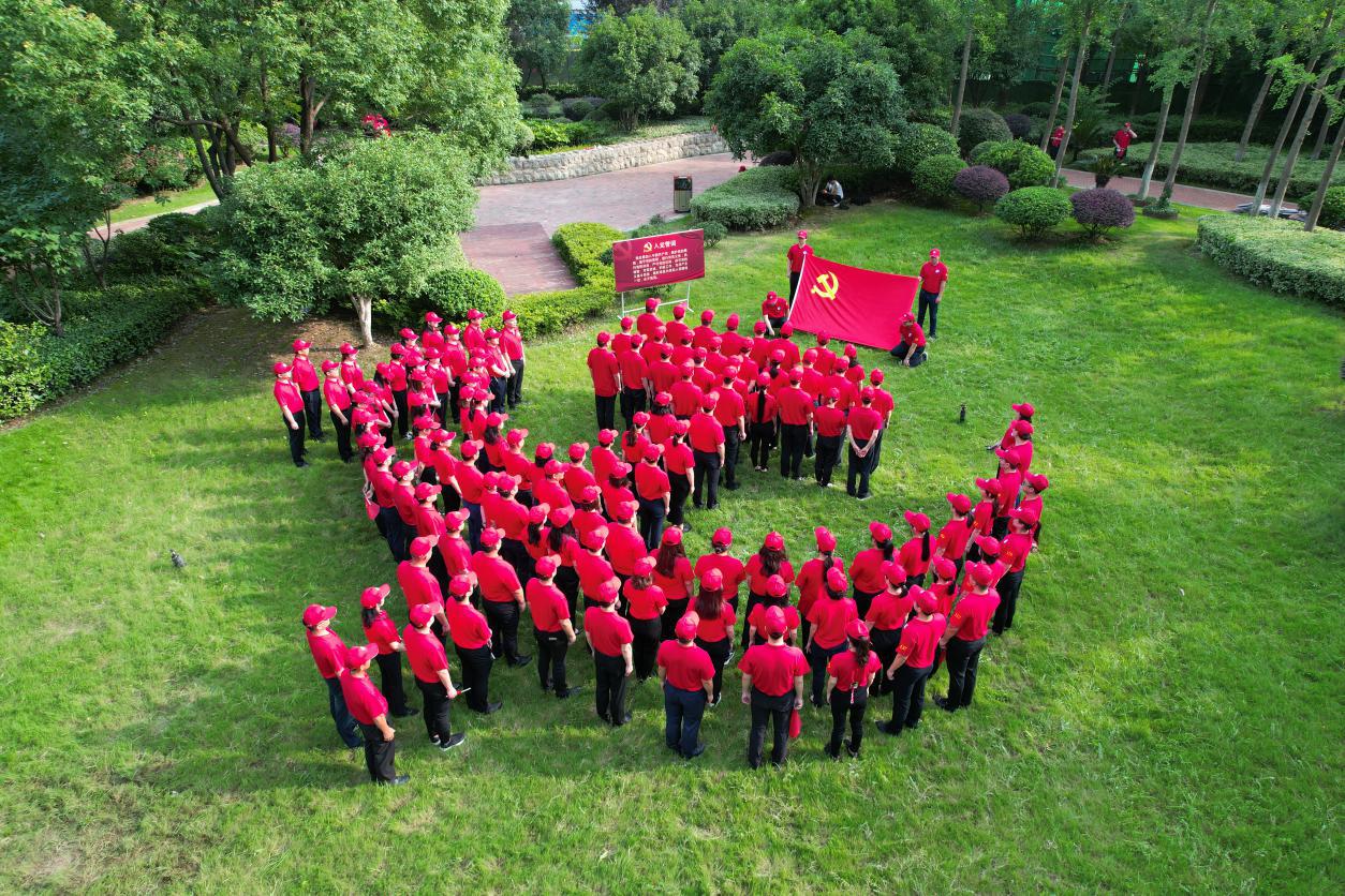 活動(dòng)正式開始前,在場(chǎng)全體黨員、入黨積極分子精神抖擻、熱情高漲,在統(tǒng)一指揮下分別擺出黨徽、數(shù)字100和清能logo圖案,以“航拍造型”的特殊形式為黨送上最真摯的生日祝?!,F(xiàn)場(chǎng)氣氛活躍熱烈,金色的黨徽在一團(tuán)紅色的簇?fù)硐?,在鳥鳴笑語、碧草芬芳中迎著朝陽熠熠生輝,充分展現(xiàn)了清能人昂揚(yáng)向上、愛黨敬業(yè)的良好精神風(fēng)貌。清能人以此誓言緊跟黨走,永遠(yuǎn)信黨愛黨。