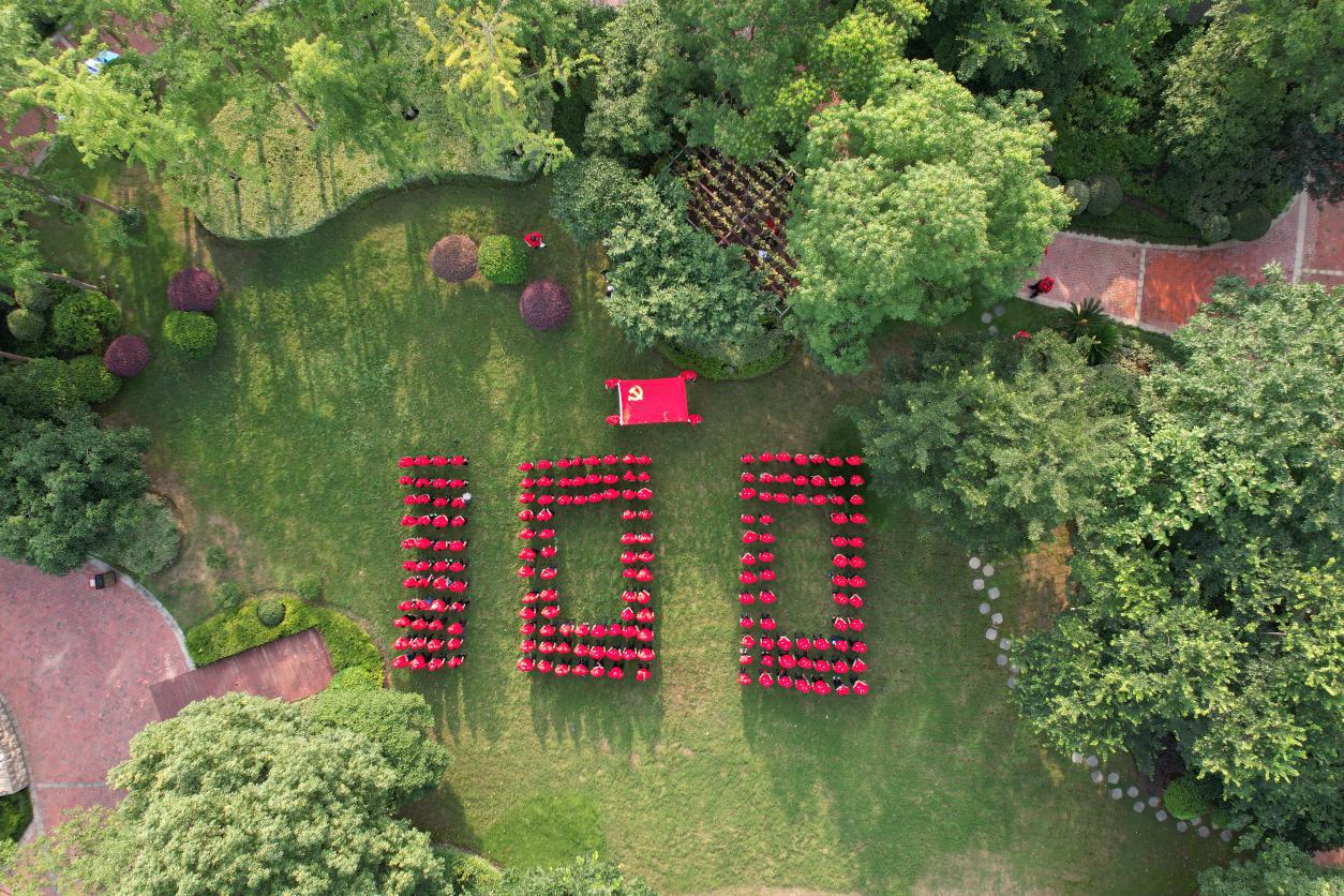 圖:慶祝中國共產(chǎn)黨成立100周年徽標(biāo)隊(duì)形