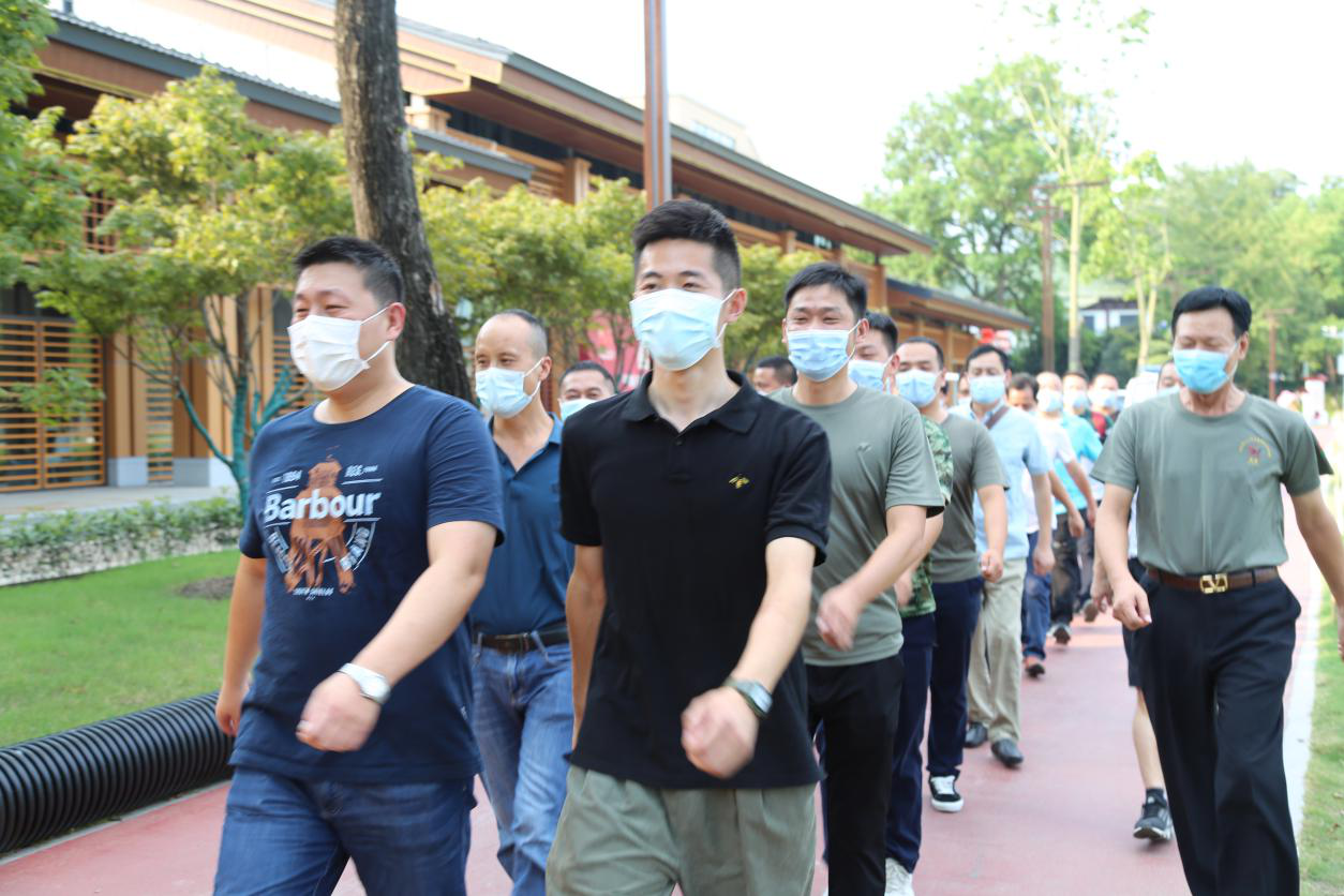 “日落西山紅霞飛,戰(zhàn)士打靶把營(yíng)歸把營(yíng)歸……”全體退役軍人列隊(duì)行進(jìn)并合唱軍歌《走向打靶場(chǎng)》《打靶歸來(lái)》??犊ぐ骸⒓で榕炫鹊母杪曧憦刈详?yáng)湖公園,嘹亮的軍歌把退伍軍人們帶回到曾經(jīng)火熱的軍營(yíng)生活情景當(dāng)中。