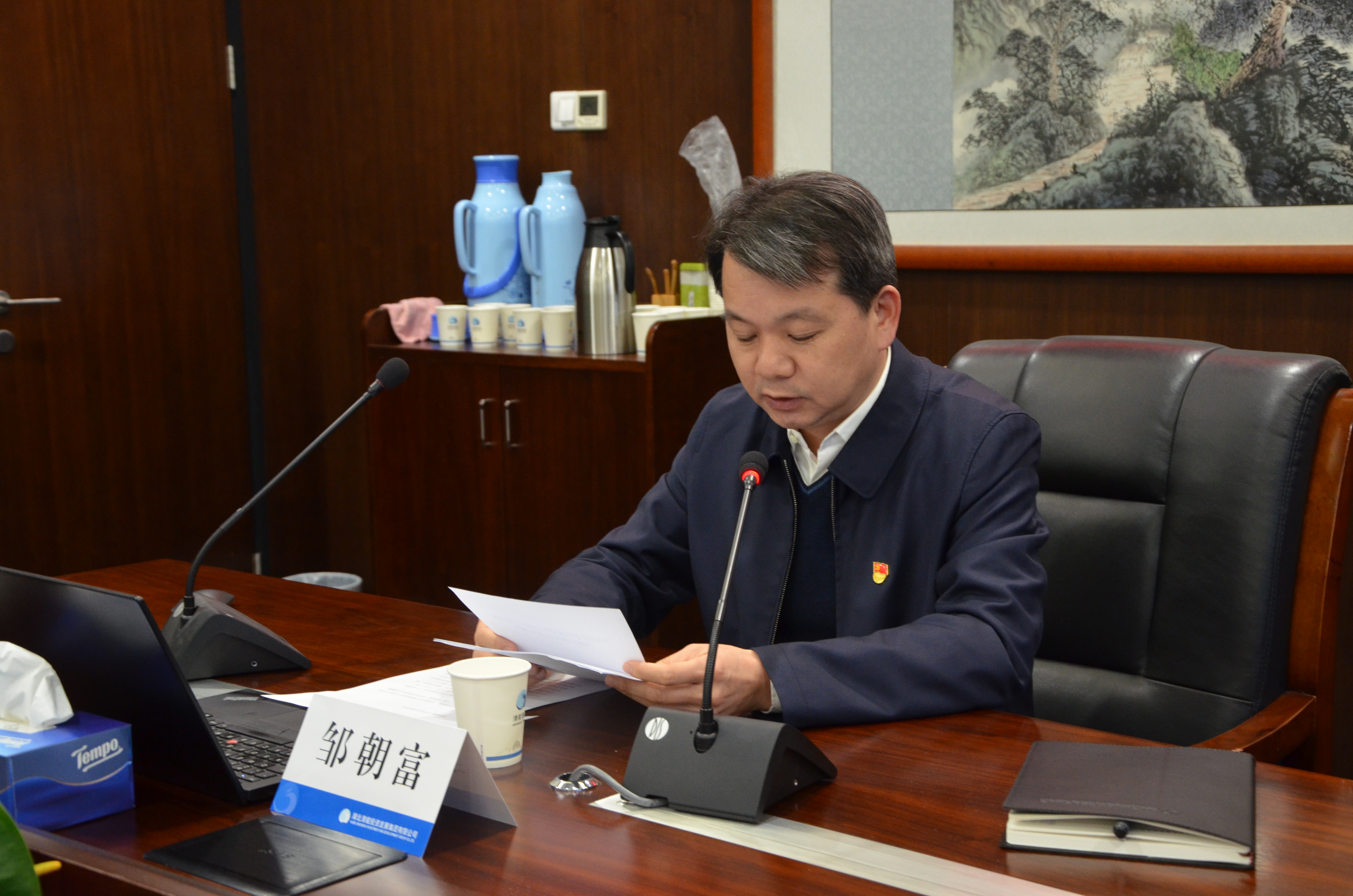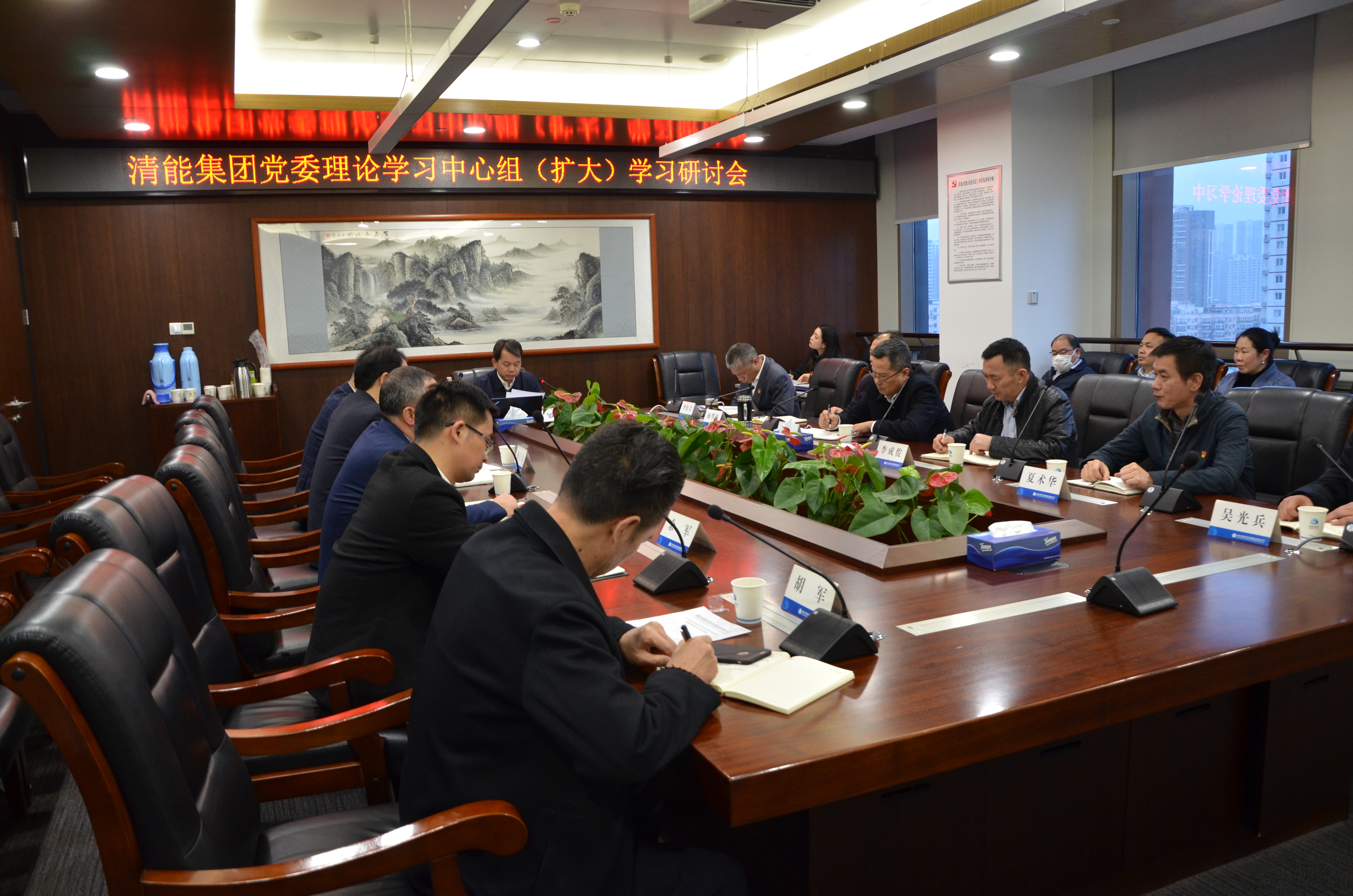 12月24日下午,清能集團黨委理論學習中心組專題召開學習黨的十九屆六中全會精神學習研討會,清能集團黨委書記、董事長鄒朝富主持會議并講話。集團黨委班子成員、集團總部中層副職及以上干部參加學習。