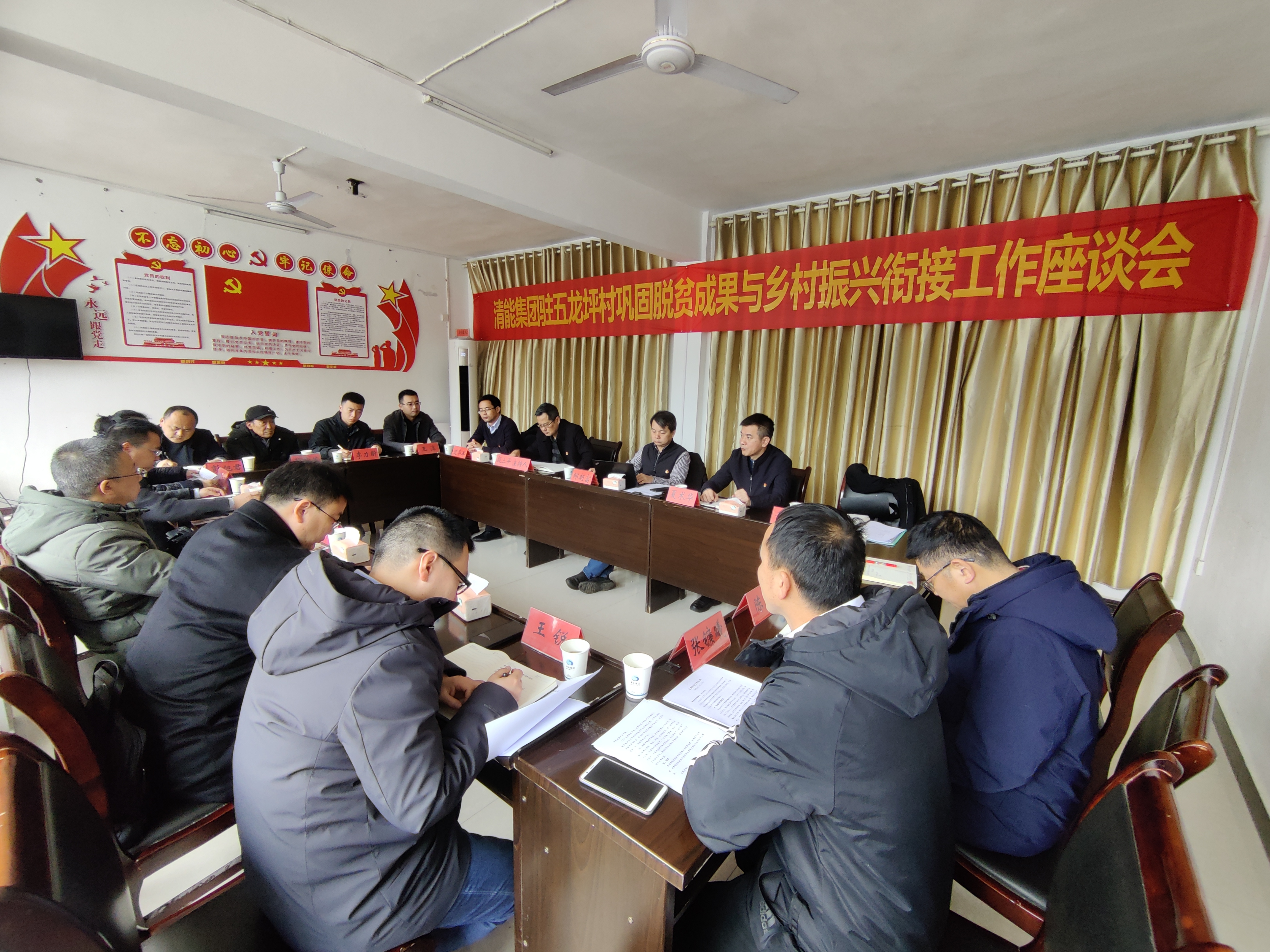 考察結(jié)束后,在五龍坪村村委會(huì)召開了調(diào)研工作座談會(huì)。會(huì)上,鄒朝富認(rèn)真聽取了五龍坪村鞏固脫貧成果和開展鄉(xiāng)村振興工作的情況匯報(bào),對(duì)五龍坪村近年來在基層治理、美麗鄉(xiāng)村、產(chǎn)業(yè)發(fā)展等方面取得的成績(jī)表示充分肯定和祝賀,并代表清能集團(tuán)向五龍坪村捐贈(zèng)院落道路硬化工程建設(shè)經(jīng)費(fèi),殷三平代表集團(tuán)黨委向五龍坪村補(bǔ)助基層黨組織建設(shè)經(jīng)費(fèi)。