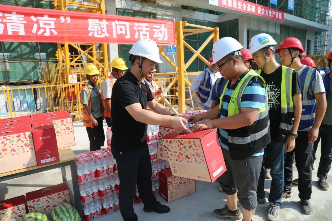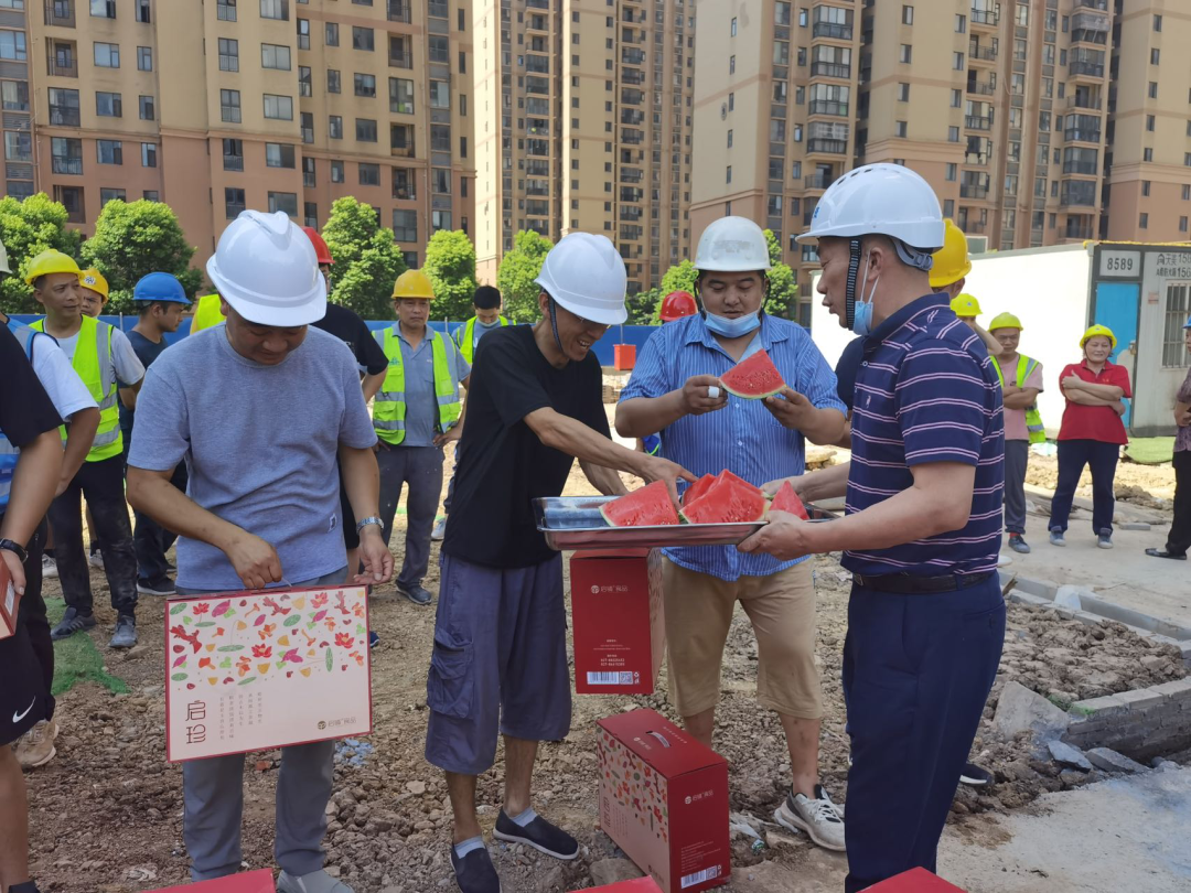 集團(tuán)黨委班子成員分別走訪慰問了清江錦城項(xiàng)目、清能正榮府項(xiàng)目、清能龍湖天曜項(xiàng)目以及荊州學(xué)府花園項(xiàng)目,實(shí)地察看了項(xiàng)目施工現(xiàn)場,詢問了解了項(xiàng)目安全生產(chǎn)、勞動保護(hù)及防暑降溫工作情況,積極協(xié)調(diào)解決職工暑期生產(chǎn)生活方面的困難和問題,為項(xiàng)目一線職工送去西瓜、礦泉水、清涼禮包等防暑降溫物品,叮囑他們在做好本職工作的同時,注意高溫酷暑下的自我保護(hù),把健康和安全生產(chǎn)放在第一位,以良好的精神狀態(tài)投入到工作中。