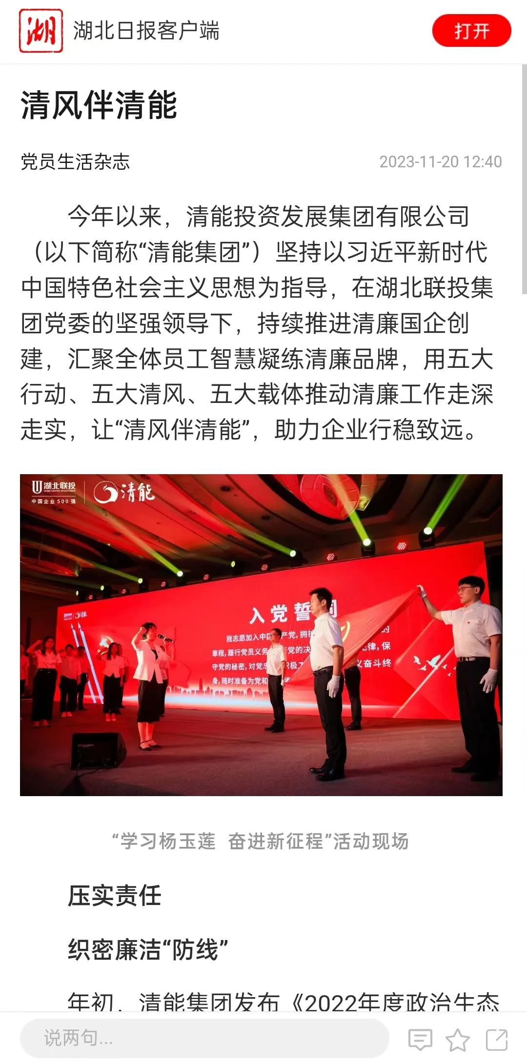 正面引導(dǎo)與反面警示共繪清能人“清廉底色”,在集團(tuán)內(nèi)部掀起清廉、正氣、奉獻(xiàn)、勤勉、自律“五大清風(fēng)”,吹動(dòng)集團(tuán)“廉”花盛開(kāi),擦亮員工“蓮之本色”。