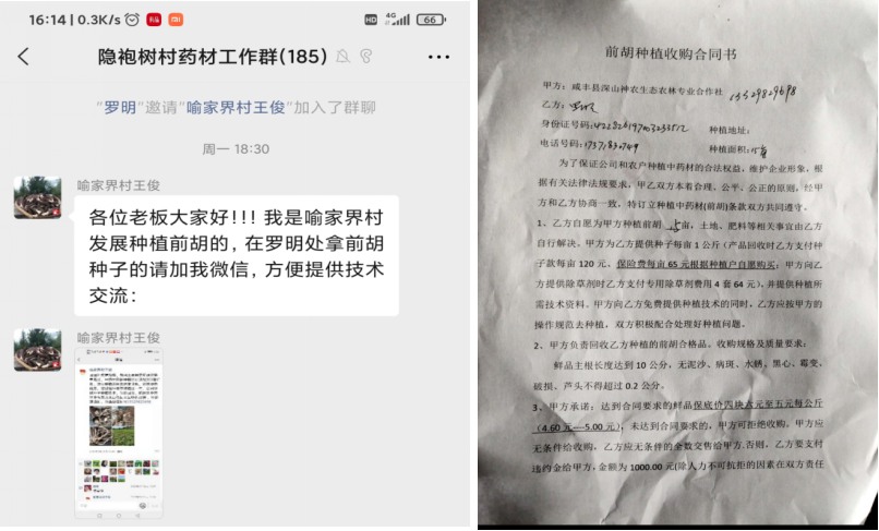 圖: 駐村工作隊與專業(yè)合作社為村民種植前胡牽線搭橋