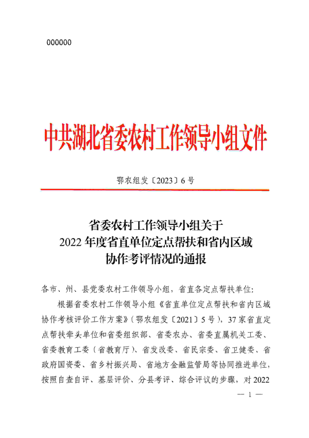 詳見《關(guān)于2022年度省直單位定點幫扶和省內(nèi)區(qū)域協(xié)作考評情況的通報》(鄂農(nóng)組發(fā)〔2023〕6號)