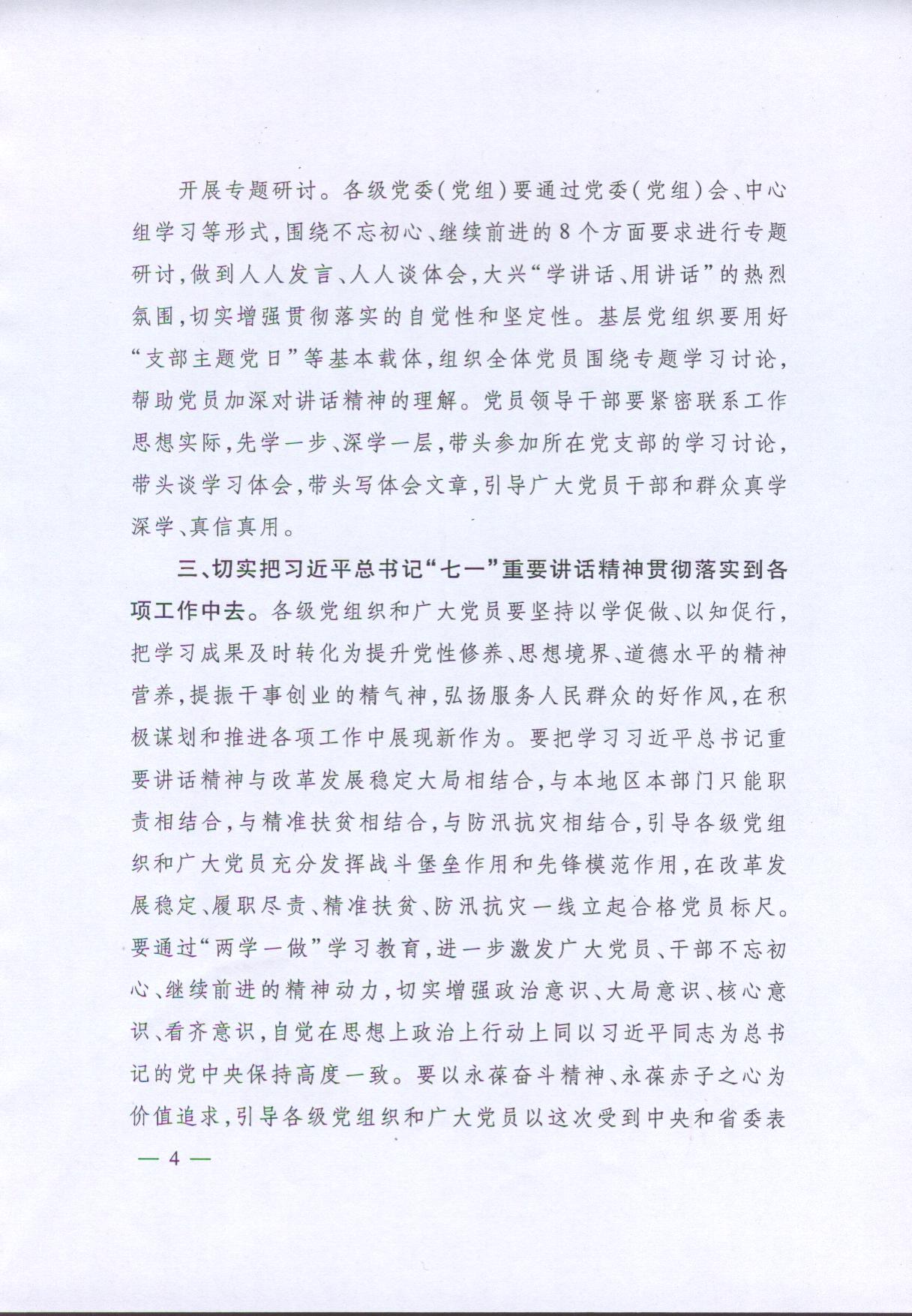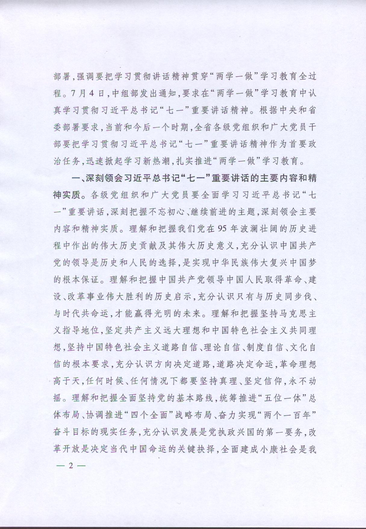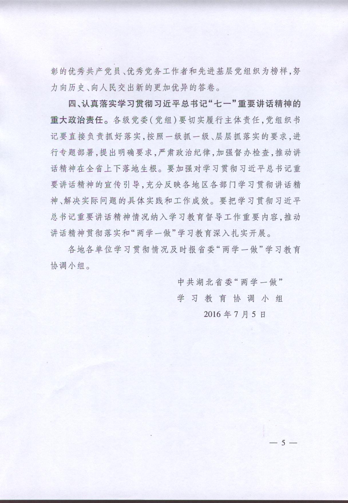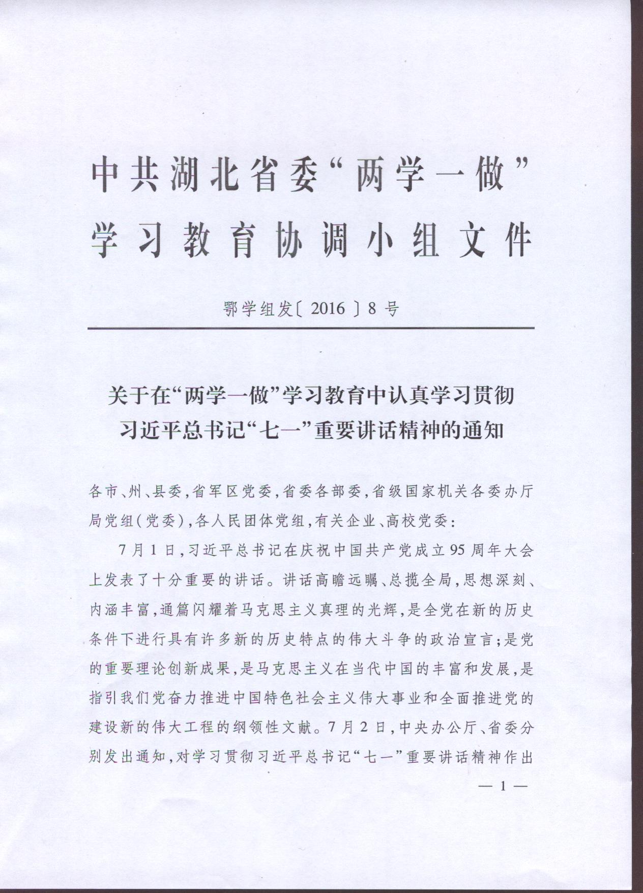 關(guān)于在“兩學(xué)一做”學(xué)習(xí)教育中認(rèn)真貫徹習(xí)近平總書記“七一”重要講話精神的通知